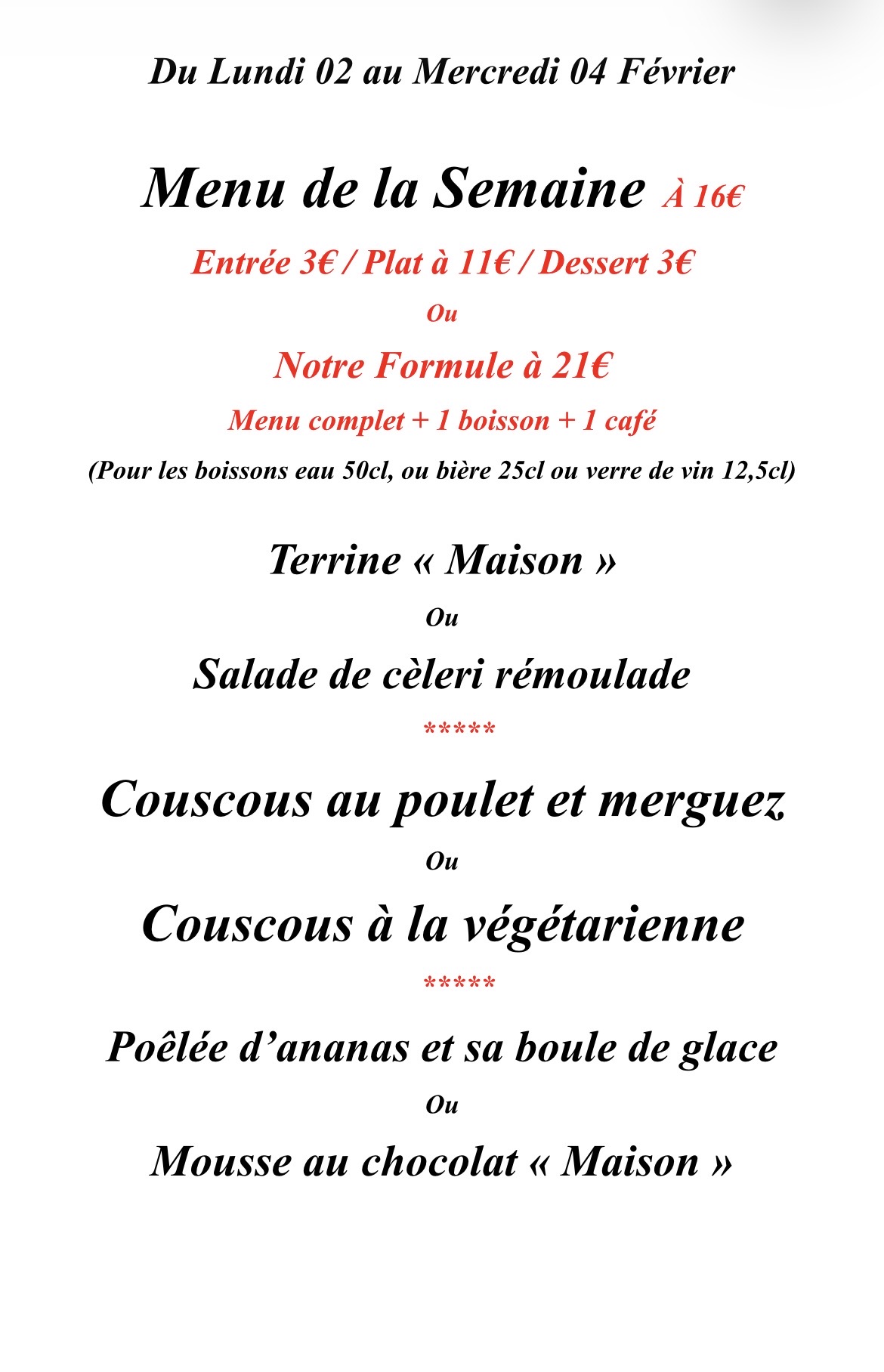 Ou laissez-vous séduire par notre menu du jour, du lundi au vendredi midi.